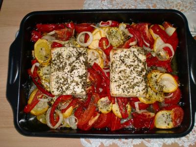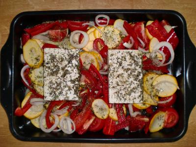 Sowie das Abendessen (Schafskäse überbacken mit Antipasti)